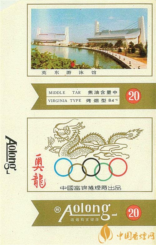 上世紀(jì)90年代,黑龍江富錦卷煙廠出品了“奧龍”煙標(biāo)(圖③),主版畫(huà)面是霍英東先生捐資興建的英東游泳館;副版圖案上方是騰云駕霧的神龍,下方是奧運(yùn)五環(huán)標(biāo)志。湖北武漢卷煙廠咸寧分廠于同時(shí)期出品的“奧博”煙標(biāo),主副版畫(huà)面均為著名的古希臘雕塑《擲鐵餅者》,在其下方是奧運(yùn)五環(huán)標(biāo)志、橄欖枝和地球圖案。同時(shí)期,湖北鄖陽(yáng)卷煙廠出品的“搏冠”煙標(biāo),主版畫(huà)面是一名男足運(yùn)動(dòng)員正在踢球;副版畫(huà)面是雙龍和足球,上方印有“沖出亞洲 搏擊奧運(yùn)”的字樣。
