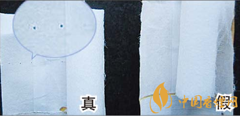 真煙透明紙平整且搭口用烙鐵燙合,平整光潔;假煙搭口和封口多用膠水粘合,透明紙松散,手感軟硬不均。
