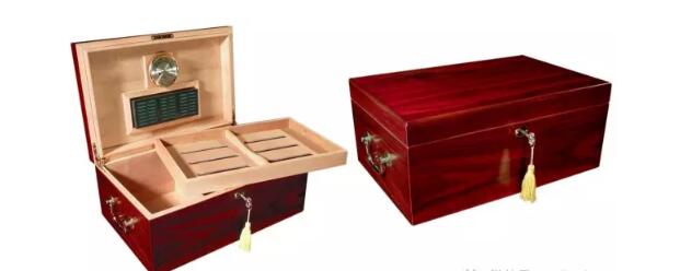現(xiàn)在雪茄保濕盒一般采用后兩種方式,應(yīng)用最廣泛,也是最普通的是第二種,使用中等密度纖維板作為主體,膨脹度較小,用西班牙雪松木皮作為內(nèi)襯又能比較好的存儲雪茄。那些比較昂貴的雪茄保濕盒通常會采用第三種方式,內(nèi)襯是西班牙雪松木皮,主體結(jié)構(gòu)用的是硬木,給硬木皮上高光漆更容易些,同時(shí)也更有質(zhì)感。另外一個(gè)原因是很多硬木本身就是昂貴的。