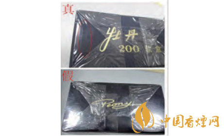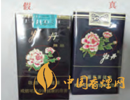 正面商標(biāo)紙差異對比:真品卷煙采用絨面印刷工藝,花形悉心勾勒,更顯質(zhì)感,圖案“牡丹花”更為寫實。假冒偽劣“牡丹(軟藍(lán))”多以舊版“牡丹花”造型進(jìn)行模仿,其圖案與真品存在明顯差異。