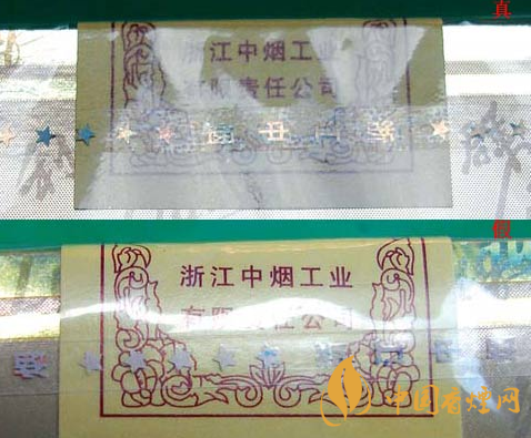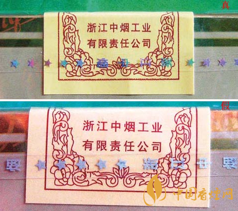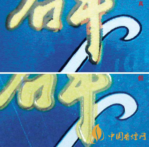 看商標(biāo)紙印刷方式:真煙的商標(biāo)紙印刷方式為凹印與膠印相結(jié)合,黃色筆劃邊緣呈鋸齒狀、黑色筆劃邊緣光滑。假煙的商標(biāo)紙印刷方式皆為膠印,字體筆劃邊緣都光滑。