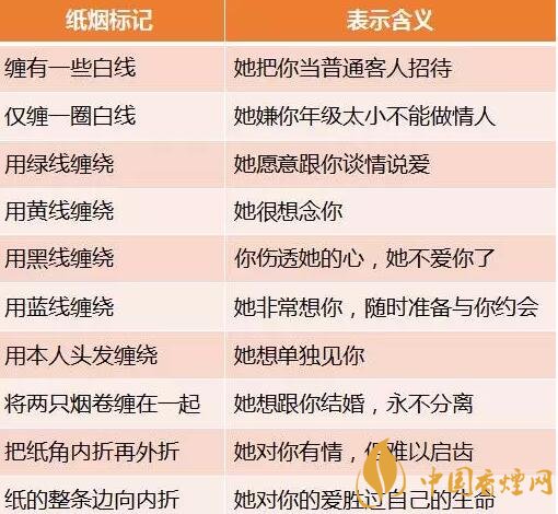 在緬甸的迪登地區(qū),女子接受或謝絕男子求愛,不是用語言表明,而流行遞上一支標有特定符號的紙煙來暗示,不同的符號代表不同的情況:
