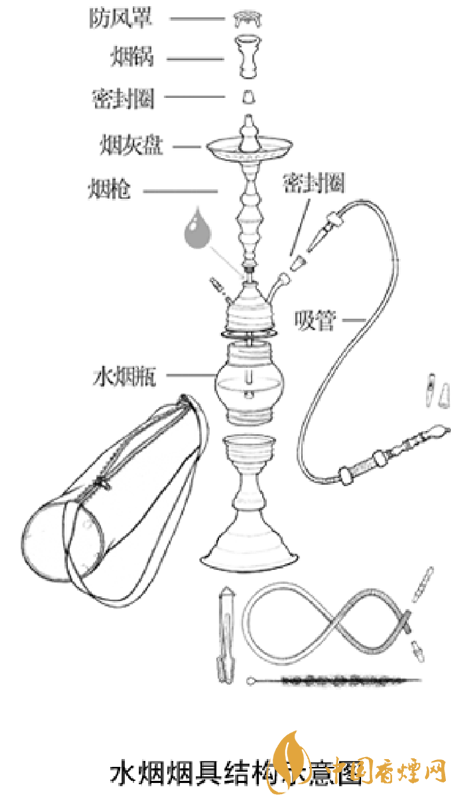 水煙部件可分為陶瓷鍋 ,碳盆,頂部橡膠密封圈,水煙主體桿子,空氣閥門,瓶子鏈接橡膠圈,水煙瓶子,水煙管,那么我們在對(duì)水煙壺怎么做了解之前,我們先來了解一下水煙壺怎么安裝。